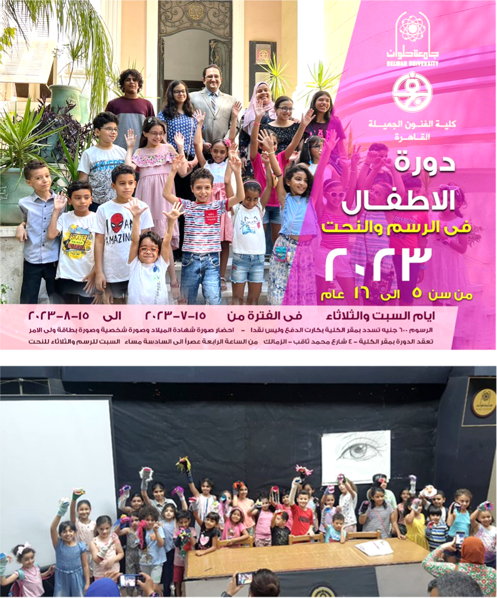 تنظم كلية الفنون الجميلة دورة الأطفال في الرسم والنحت من سن ٥ سنوات إلى ١٦ عام أيام السبت والثلاثاء في الفترة من ٢٠٢٣/٧/١٥ إلى ٢٠٢٣/٨/١٥.